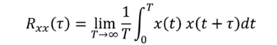 It bears mentioning that long before real-time control of a random vibration signal was possible, random vibration test were conducted using a “white- noise” generator and a manually adjusted equalizer to shape the spectrum. Filter-based signal analysis was employed with a human “in the loop” to achieve some semblance of spectral control. In that same era, the PSD was formally defined by the classic Wiener-Khintchine relationship as the (not so fast!) Fourier transform of an Autocorrelation function. An autocorrelation is defined by the equation:
