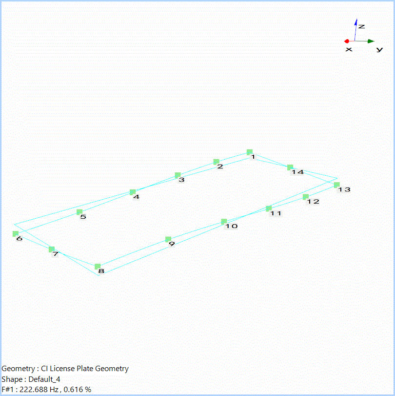 A modal test is carried out to compare the effect of multi-resolution and single resolution spectrum (regular FFT). In this case, the modal characteristics of a license plate is acquired by performing a MIMO FRF test carried out using a pair of modal shakers and 14 accelerometers. The shakers impart energy to the structure for a longer period which ensures more data sets. The higher quality of the measurements also helps improve the estimation of modal parameters.